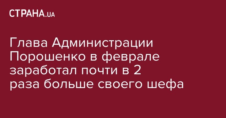 Глава Администрации Порошенко в феврале заработал почти в 2 раза больше своего шефа