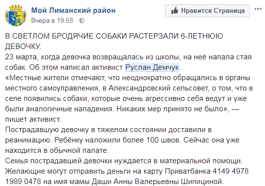 В Одесской области стая бездомных собак искусала 6-летнюю девочку, которая возвращалась домой со школы.