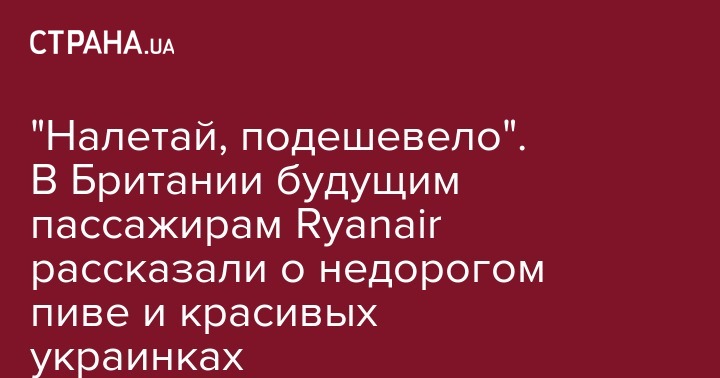 После того, как стало известно о запуске новых маршрутов лоукостера Ryanair в Украину, британское издание The Sun опубликовало материал, где рассказало будущим пассажирам о привлекательных ценах на алкоголь, сигареты и жилье в стране, а также об избытке красивых женщин.