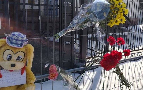 В Киеве люди несут цветы и мягкие игрушки к посольству Российской Федерации в Украине. В некоторые букеты вложены записки с соболезнованиями в связи с трагедией в Кемерово.
