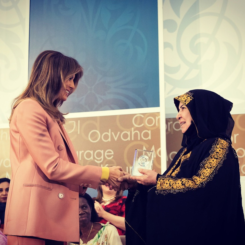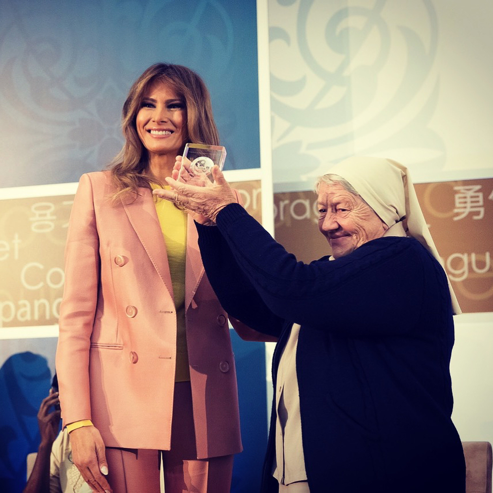 Мелания в костюме цвета георгина вручила женщинам награды "за смелость"