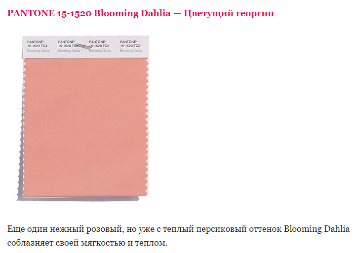 Цвет костюма Мелании Трамп - нежно розовый Pantone 15 1520 - цвет, с теплым персиковым оттенком Blooming Dahlia ("Цветущий георгин"), который соблазняет своей мягкостью и теплом, заявленный в Милане главным цветом 2018 года.