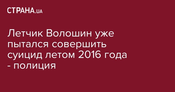Летчик Волошин уже пытался совершить суицид летом 2016 года - полиция