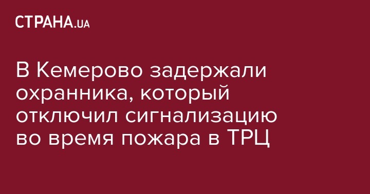 В Кемерово задержан охранник ТЦ "Зимняя вишня", который при получении сигнала о возгорании отключил систему оповещения.
