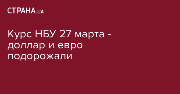 Во вторник, 27 марта, Нацбанк Украины установил официальный курс гривны по отношению к иностранным валютам. По сравнению с предыдущим рабочим днем доллар и евро подорожали.