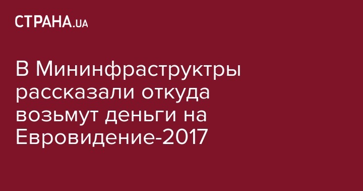 В Мининфраструктры рассказали откуда возьмут деньги на Евровидение-2017