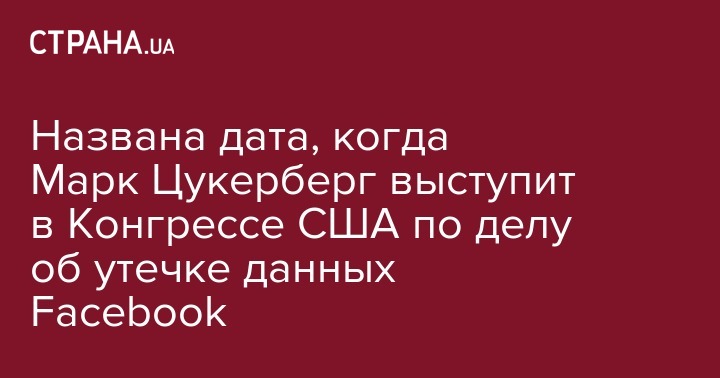 Названа дата, когда Марк Цукерберг выступит в Конгрессе США по делу об утечке данных Facebook
