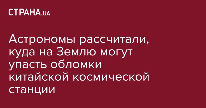 Астрономы рассчитали, куда на Землю могут упасть обломки китайской космической станции
