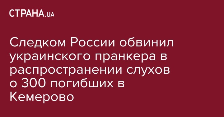 Следственный комитет Российской Федерации обвинил украинского пранкера Никиту Кувикова из Черкасс (псевдоним Евгений Вольнов) в распространении ложной информации о "сотнях погибших" при пожаре в ТЦ "Зимняя вишня" в Кемерово.