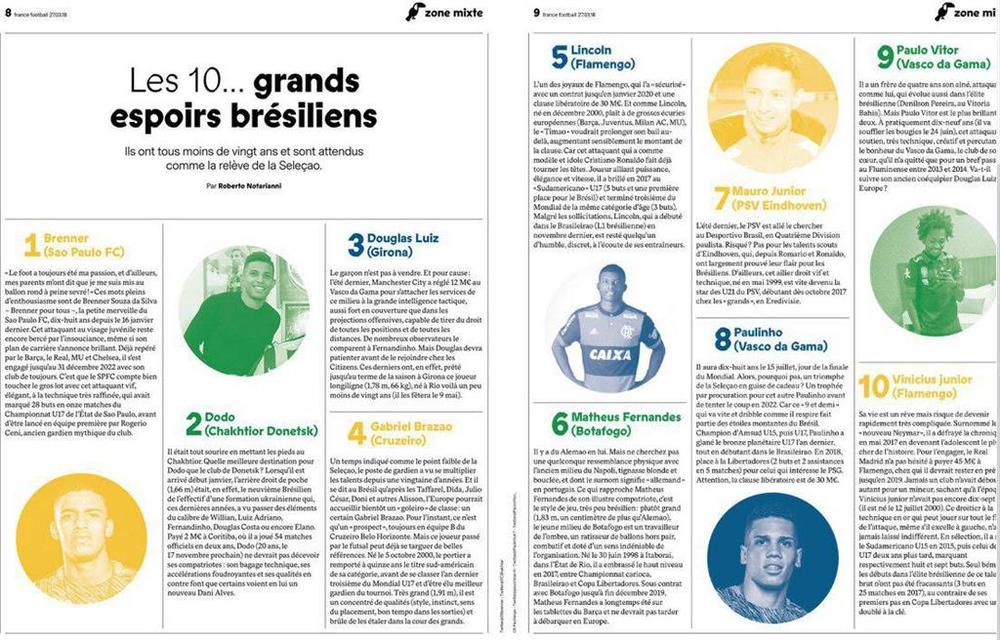 Журналист France Football Роберто Нотариани составил список из десяти самых больших надежд бразильского футбола. На второе место он поставил защитника донецкого Шахтера Додо.