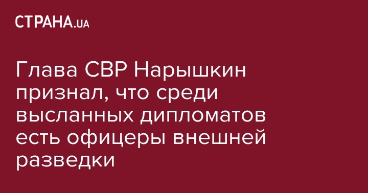 Директор Службы внешней разведки России Сергей Нарышкин рассказал, что среди высланных западными странами представителей российских дипмиссий есть офицеры внешней разведки, но их немного. Об этом сообщает РИА "Новости".