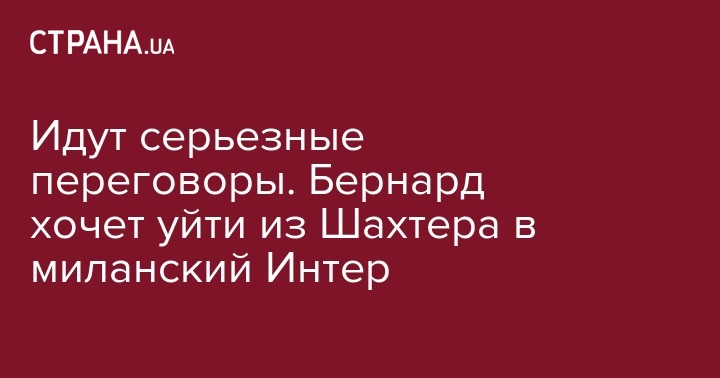 Идут серьезные переговоры. Бернард хочет уйти из Шахтера в миланский Интер