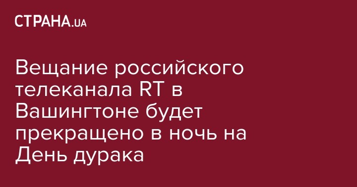 Вещание российской телекомпании RT в Вашингтоне будет прекращено в ночь на 1 апреля.  Об этом сообщило в четверг агентство Bloomberg.