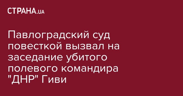 Павлоградский горрайонный суд Днепропетровской области опубликовал повестку по вызову на заседание "командиру батальона" "Сомали" "ДНР" Михаилу Толстых по прозвищу "Гиви", который погиб более года назад. Об этом сообщают "Украинские новости".