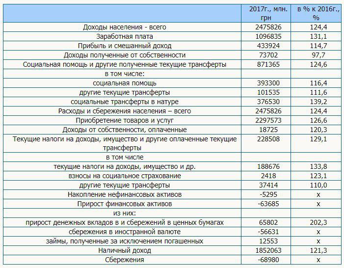 В 2017 году доходы населения составили 2475,8 млрд грн, а расходы – 2544,8 млрд грн, сбережения украинцев в 2017 году сократились на 69,0 млрд грн, сообщает Государственная служба статистики.