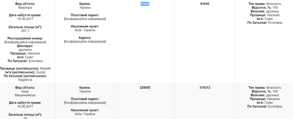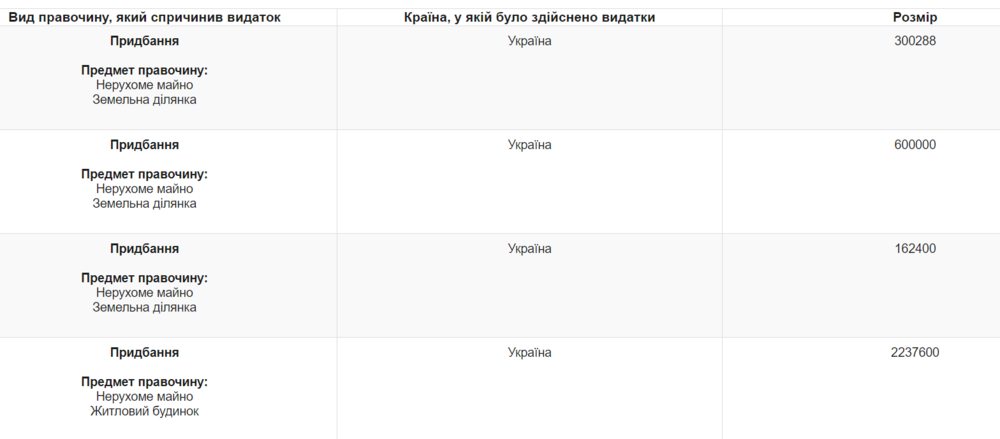 Кроме того, супруга министра продала недвижимости на сумму более 800 тысяч гривень.