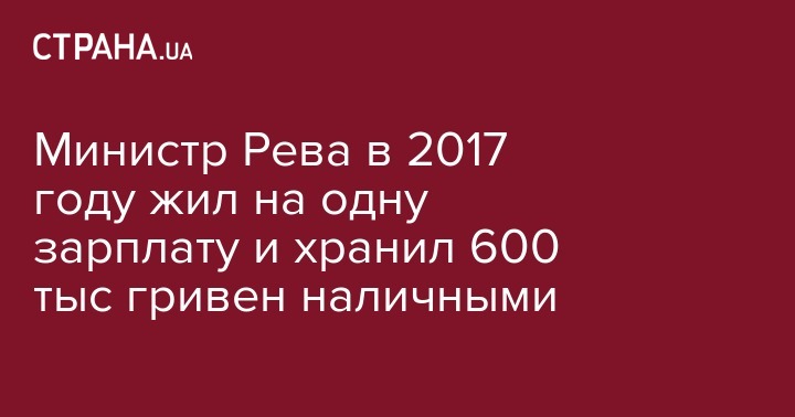 Также Рева задекларировал 609 тыс. грн наличными.
