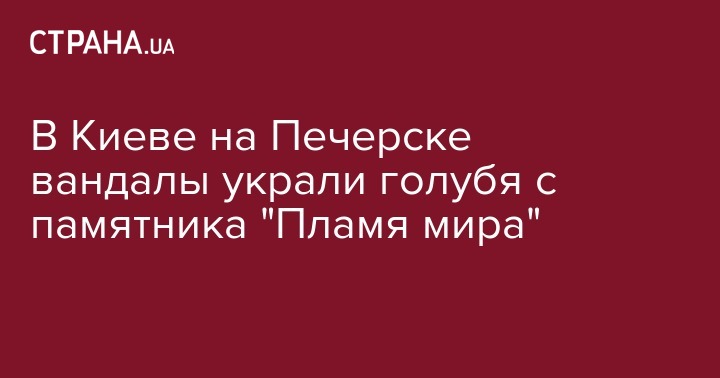 В Киеве вандалы изуродовали открытый год назад памятник "Пламя мира" в Печерском районе. Неизвестные похитили голубя со скульптуры.