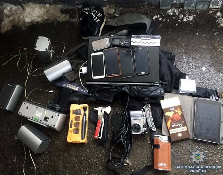 Следственно-оперативная группа Святошинского управления полиции изъяла у мужчин ноутбук, планшет, фотоаппарат, аксессуары к технике, мобильные телефоны, одежда, ювелирные украшения и набор отмычек. Сведения в Единый реестр досудебных расследований внесли по ч. 3 ст. 185 (Кража) Уголовного кодекса Украины.
