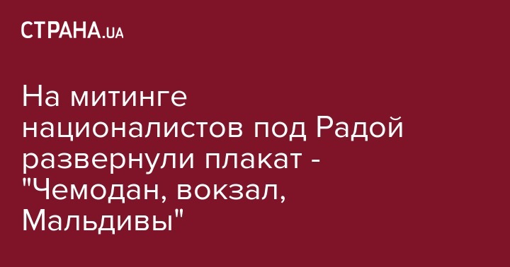 На митинге националистов под Радой развернули плакат - "Чемодан, вокзал, Мальдивы"