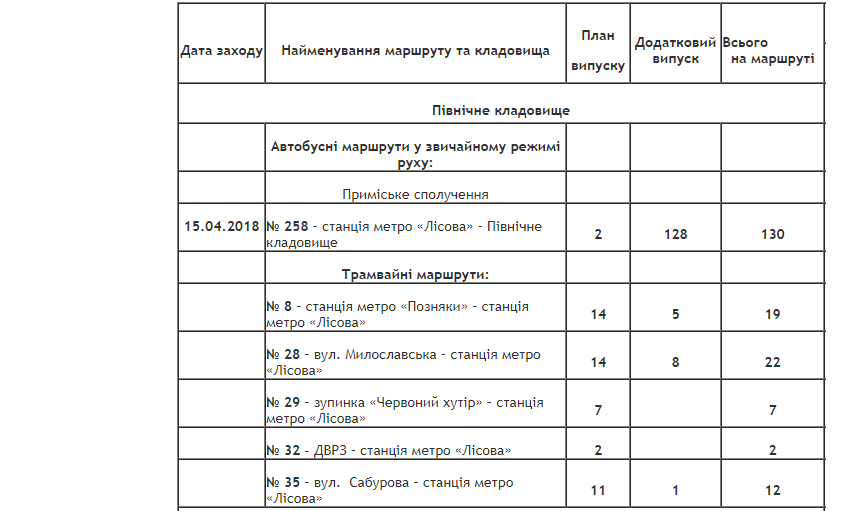 В Киеве с 15 по 18 апреля планируют увеличить количество транспорта в направлении кладбищ. Об этом сообщает пресс-служба КГГА.