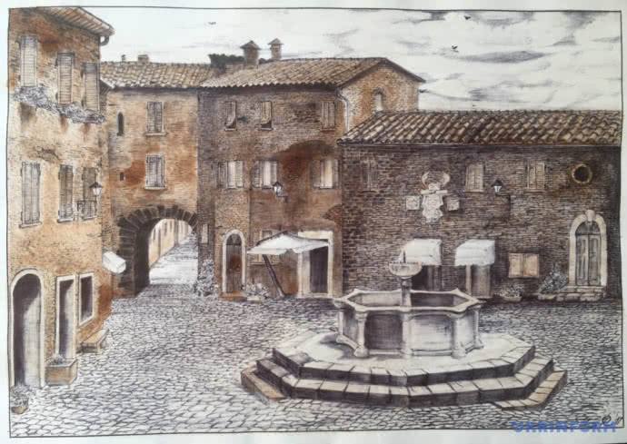 Дочь Сущенко Юлия до этого рассказала "Укринформу", что на этих рисунках отец "перенес" зрителя в пригород итальянского города Парма и к маяку Ар-Мен, который находится во французской Бретани.