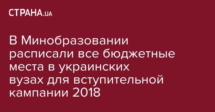 В Минобразовании расписали все бюджетные места в украинских вузах для вступительной кампании 2018