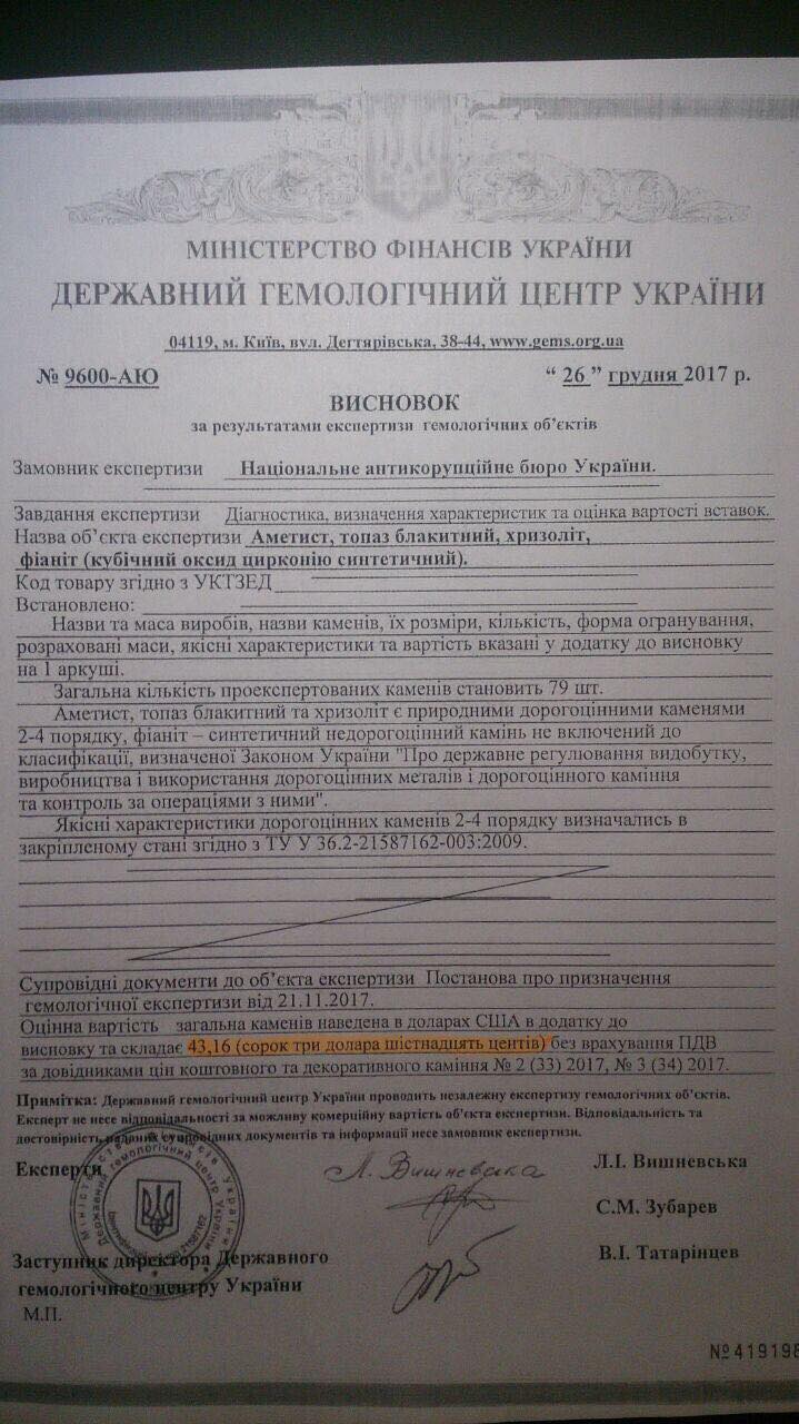 Экспертиза драгоценных камней, которая была проведена по заказу НАБУ и результаты которой оказались в распоряжении "Страны", не выявила у Розенблата бриллиантов среди изъятых у него ювелирных изделий.
