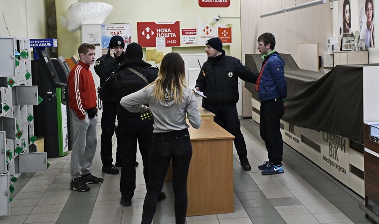 В это время молодые люди направились в магазин "Велика кишеня", откуда пытались вынести алкоголь, не заплатив за него. Это заметили охранники и остановили грабителей. Один из злоумышленников достал нож и попытался ударить им охранника, однако оружие удалось выбить. Завязалась драка, в ходе которой было разбито множество бутылок. Один из грабителей порезал лицо осколками, ему понадобилась помощь медиков.