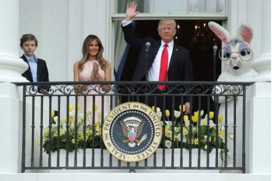 В традиционной программе были и соревнования по катанию яиц, чтение Меланией Трамп сказки для малышей в саду, торжественный парад и поздравительная речь президента с балкона рядом с гигантским пасхальным кроликом.