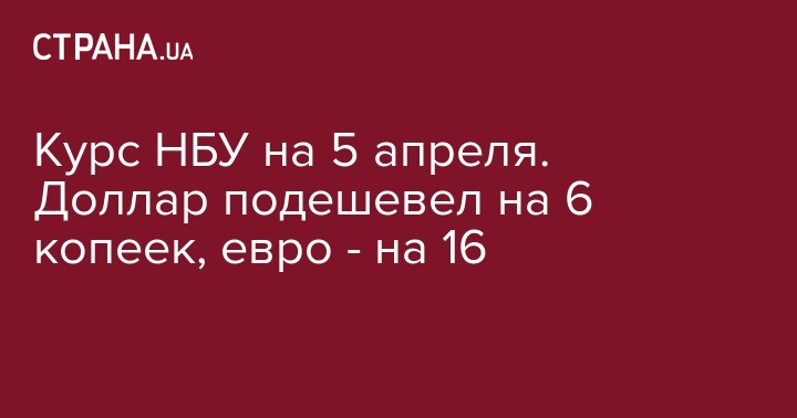В четверг, 5 апреля, Нацбанк установил официальный курс гривны по отношению к иностранным валютам. По сравнению с предыдущим рабочим днем доллар
