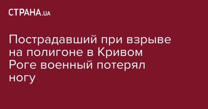 Стали известны подробности сегодняшнего взрыва на полигоне в Кривом Роге. Один из раненых военных потерял ногу. Об этом сообщает Первый городской со ссылкой на представителя оперативного командования "Восток" Евгения Романова.