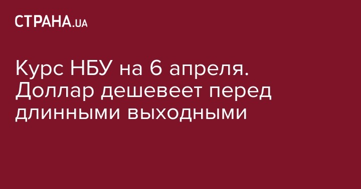 Курс НБУ на 6 апреля. Доллар дешевеет перед длинными выходными