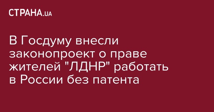В Госудуму России внесли законопроект, который разрешает обладателям паспортов так называемых "ДНР" и "ЛНР" устраиваться на работу в России без получения спецразрешения или патента.