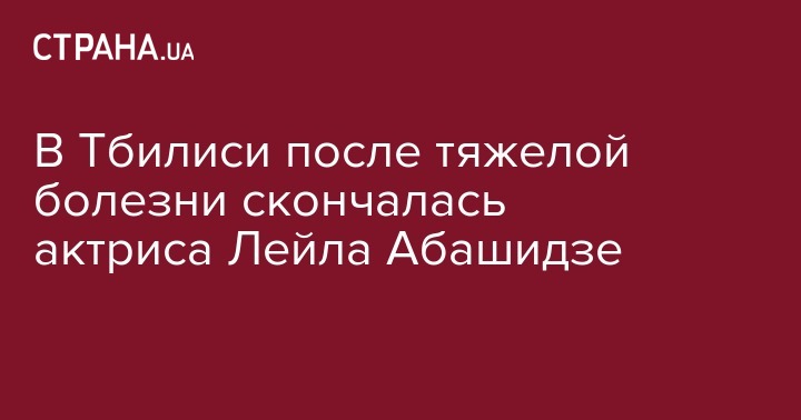 Известной советской и грузинской актрисы и кинорежиссера Лейлы Абашидзе не стало в возрасте 89 лет. Она скончалась в больнице Тбилиси после тяжелой болезни.
