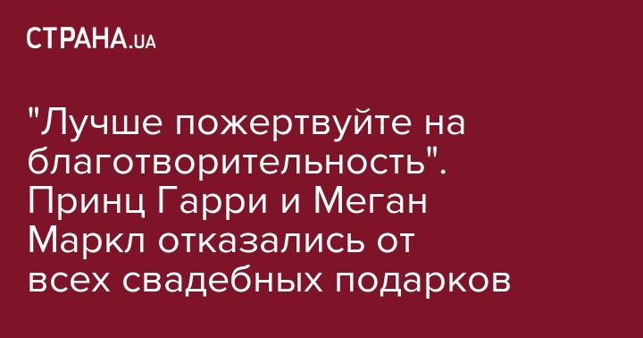 "Они (Гарри и Меган - ред.) попросили, чтобы любой, кто хотел бы отметить этот праздник, сделал пожертвование на благотворительность, а не дарил свадебный подарок", - говорится в сообщении королевской семьи.