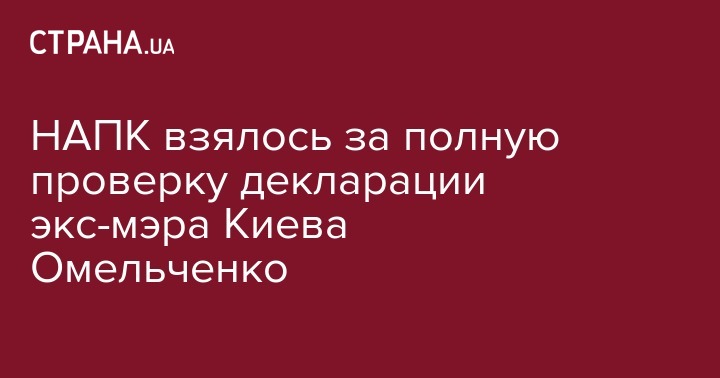 НАПК взялось за полную проверку декларации экс-мэра Киева Омельченко