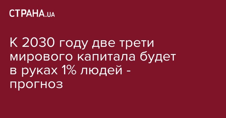 К 2030 году около 60% мирового состояния будет сосредоточено в руках у 1% людей. Об этом пишет издание The Guardian, ссылаясь на обновленные исследования аналитиков Библиотеки палаты представителей Великобритании.