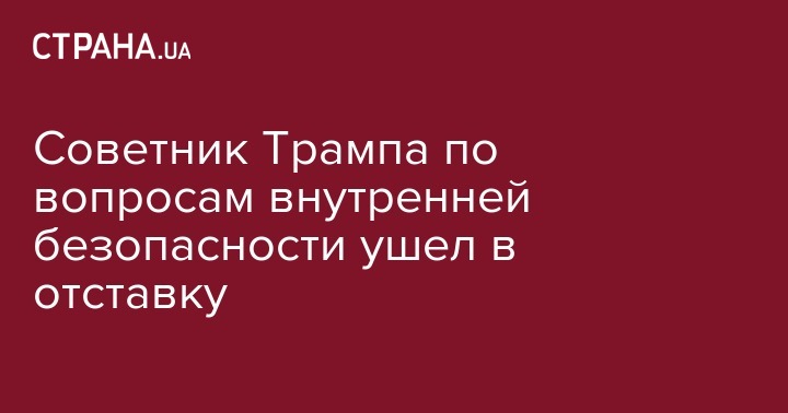 Советник президента США Дональда Трампа по вопросам внутренней безопасности Том Боссерт уходит в отставку.