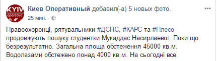 В Киеве правоохранители, спасатели и специальные службы продолжают поиски студентки Мукаддас Насирлаевой в акватории реки Днепр.