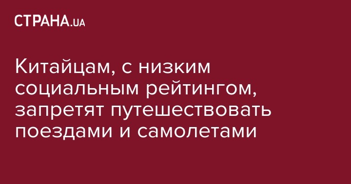 Начиная уже с мая граждане Китая, которые имеют низкий рейтинг в экспериментальной системе "социального рейтинга" (social credit) могут быть лишены возможности покупать билеты на самолеты и поезда на целый год.