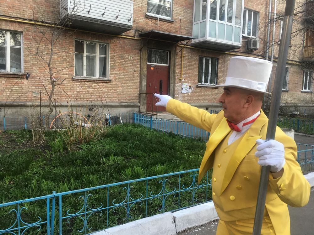 Культовый киевский дворник, который метет улицы во фраке, купил желтый смокинг