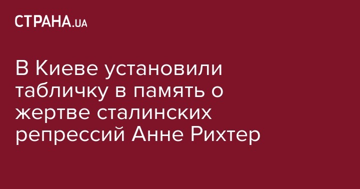 В Киеве активисты установили мемориальную табличку, посвященную репрессированной киевлянке Анне Рихтер. Табличка должна напоминать о всех жертвах сталинских репрессий.