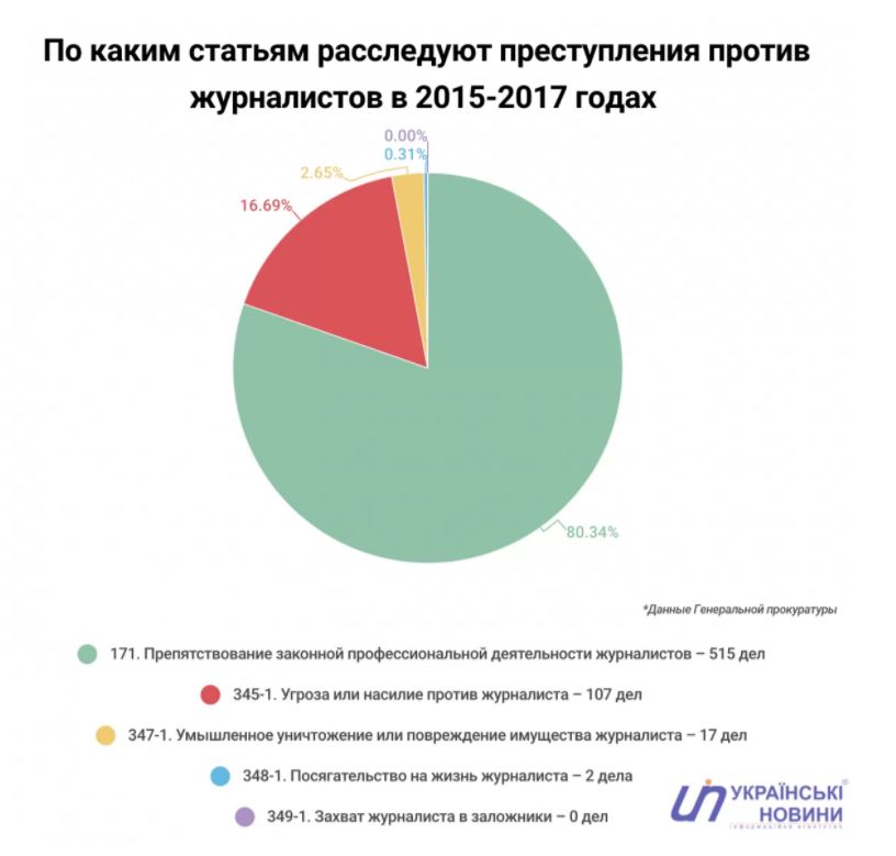 По статье 171 каждый год в суды попадает лишь 5-6 дел. Если в 2015 году это было 4% от всех начатых уголовных производств, то уже в 2017 году этот показатель опустился до 2,7%. То есть шанс добиться справедливого наказания для напавшего на журналиста имеет лишь каждое 37-е (!) дело.