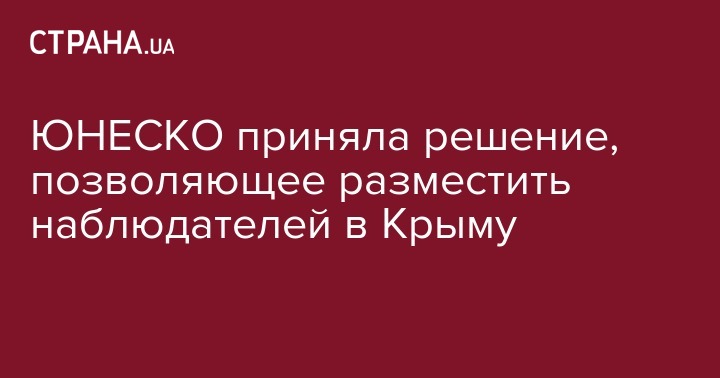 ЮНЕСКО приняла решение, позволяющее разместить наблюдателей в Крыму