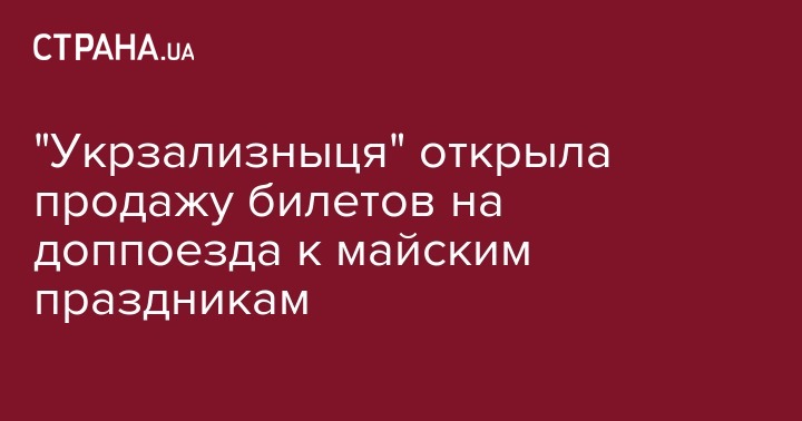 "Укрзализныця" начала продажу билетов на дополнительные поезда к майским праздникам. Об этом на своей странице в Facebook сообщил и. о. главы правления ведомства Евгений Кравцов.