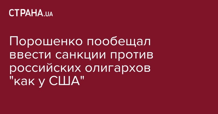 Порошенко пообещал ввести санкции против российских олигархов "как у США"