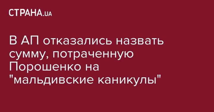 В АП отказались назвать сумму, потраченную Порошенко на "мальдивские каникулы"