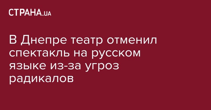 Днепровский академический театр драмы и комедии отменил показ спектакля "Лесная песня" на русском языке из-за угрозы срыва со стороны радикалов "Правого сектора". Об этом сообщает "Радио Свобода" со ссылкой на сотрудников театра.