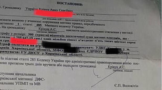ГФС наложила на девушку штраф в размере 300% невыплаченной суммы – 1 миллион 755 тысяч 647 гривен и в ближайшее время ей должны направить копию соответствующего постановления .